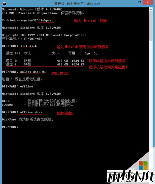 按照图示步骤对需要挂接到虚拟机上的物理硬盘系统脱机处理。