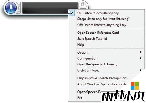 打开“开始”(Start)界面 ,输入“语音”(Speech),在搜索结果中,点击“Windows语音识别”( Windows Speech Recognition)。当你首次打开该程序时,就会进入“tutorial/introduction” 模式。然后,用户根据屏幕上的提示,快速启动和运行 “Windows语音识别”。这会语音识别模板就会出现在显示屏上方,点击麦克风图标,它就会变蓝,然后就可以来接受用户“语音指令”。