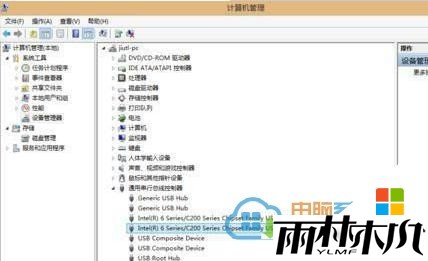 2、安装完驱动后,返回win8 ghost系统下载桌面,右键点击“这台电脑”,然后在弹出单上选择“管理”。接着在打开的管理面板上展开“设备管理器”,选择“通用串行总线控制器”。
