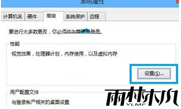 3.之后就会出现如下图中所示的窗口了,咱们将界面切换到高级这一栏中,然后点击性能后面的设置按钮。