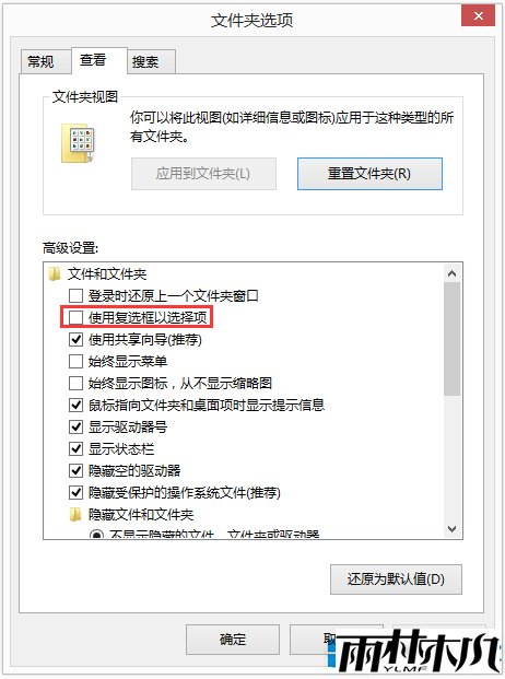 雨林木风Win8专业版系统关闭复选框的方法