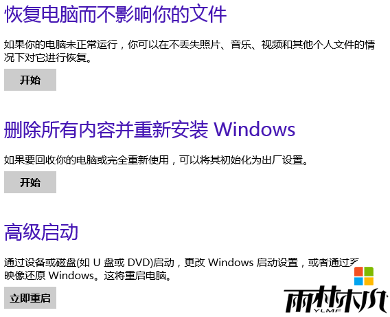 3、如果在安全模式下可以正常打开“更改电脑设置”的话,请在该模式下点击常规--“恢复电脑而不影响你的文件”的开始(对于Windows 8.1的用户可以打开更新和恢复---恢复)。